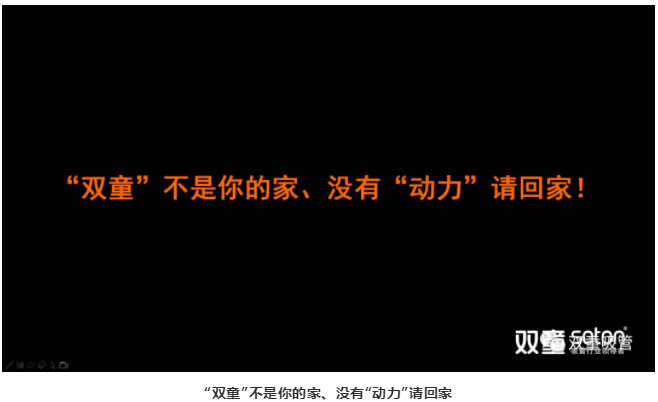 所以,“雙童”在倡導家文化的同時,提出了“雙童不是我的家”觀點,提倡“以奮斗者為本”,以此來提升組織效率!