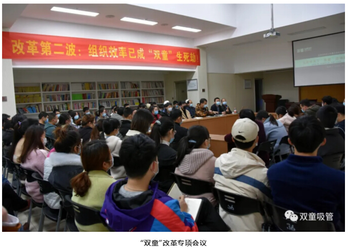 2020年4月2日,“雙童”推動企業第二波改革活動,提出“組織效率已成雙童生死劫”!在改革動員大會中,樓仲平一再強調:“‘雙童’不是你的家、沒有‘動力’請回家!”