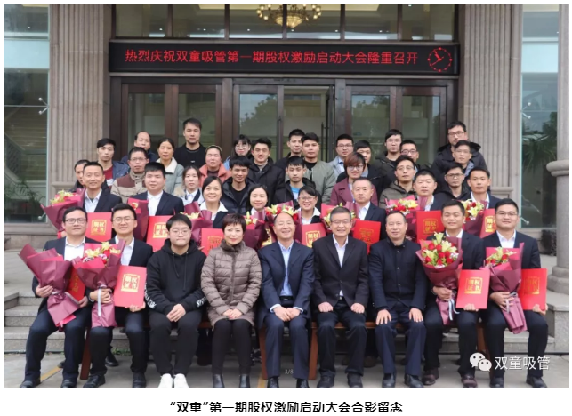 在2018年12月19日,在“雙童”第一期股權激勵啟動大會上,“雙童”首批12位核心員工正式簽約成為“雙童”的經營伙伴,我們以股份合伙、業務合伙等“合伙激勵”的 方式讓優秀人才變為合伙人,讓員工和組織的目標長遠契合、共同生長、共享價值創造的有效延伸!
