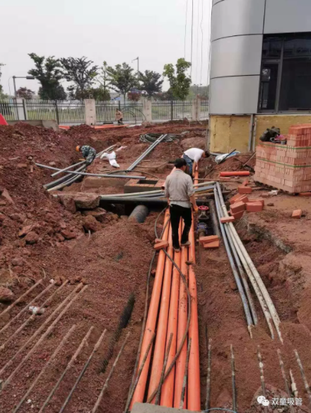 所謂的廢水收集中水回用系統其實就是:在員工生活區的衛生間內鋪設管道,將員工洗臉、洗澡、洗衣服所產生的廢水通過管道匯集,用細沙、細木炭、石英砂、活性炭等進行隔離過濾和技術處理,處理過后的水會流入專門的中水儲存池中。 廢水收集中水回用系統管道建設過程