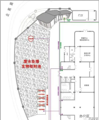 在這個過程中,員工日常生活中所產生的廢水過濾后,會流向生物吸附過濾池中,通過過濾池上栽種的樹木根須對水中的物質、養分進行再次吸附處理,這不僅能再次過濾處理廢水,同時也能讓樹木生長的越來越好。
