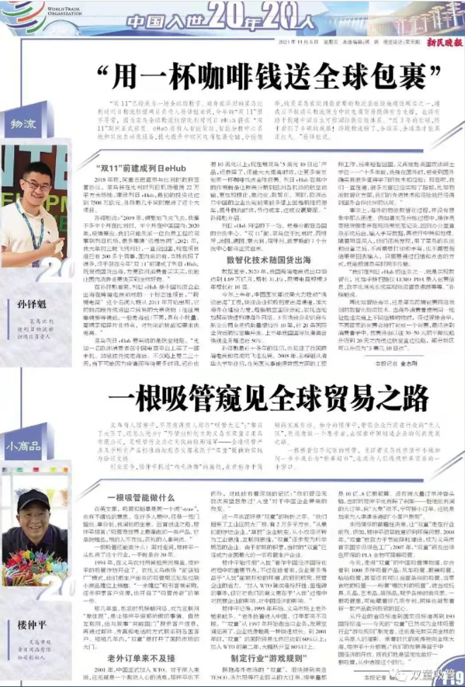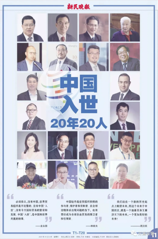 2001年12月11日,中國正式加入世貿組織,成為第143個成員?!叭胧?/span>”20年間,中國與世界彼此擁抱、共享機遇、一起成長。為此《新民晚報》特別推出了的「中國入世20年20人」專題,邀請了20位與中國“入世”20年有著特別緣分的朋友,分享他們的獨家故事。