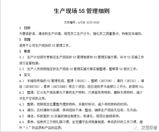 生產現場5S管理細則部分內容截圖