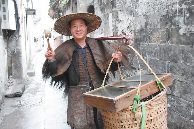 樓仲平挑“貨郎擔(dān)”的照片