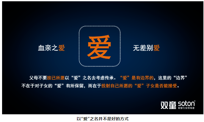 做“家族企業”還是家里的企業?其實,兩者之間的界限就在于是否規范經營,這一點在“雙童”關系哲學的“強關系與弱關系”中也有體現。弱化血緣關系,強化規則關系;弱化人情關系,強化契約關系;弱化個人關系,強化團隊關系;弱化社交關系,強化社會關系。