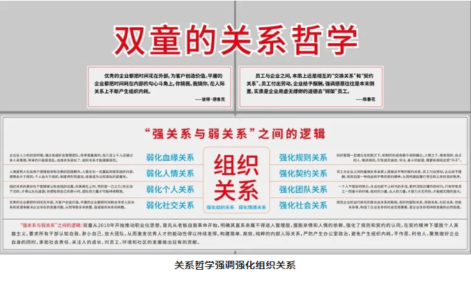 關系哲學強調要擺脫親情和人情的依賴、強化了規則和契約的認同。在正確理解信息化環境的彼此訴求下,“雙童”也逐漸建立起科學規范的組織關系:重規則、守契約、講創造、論績效、同理心、共成長,引導員工向職業化思想轉變。