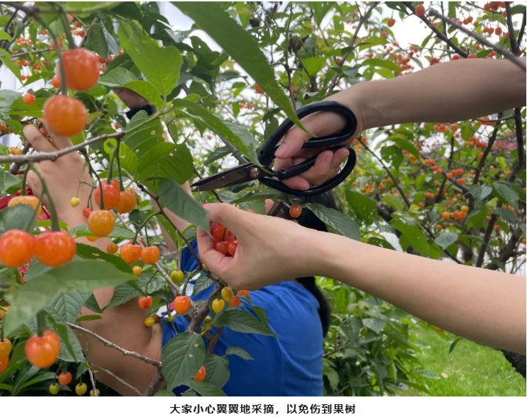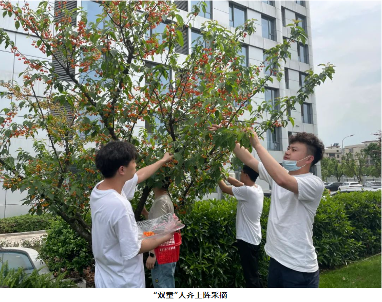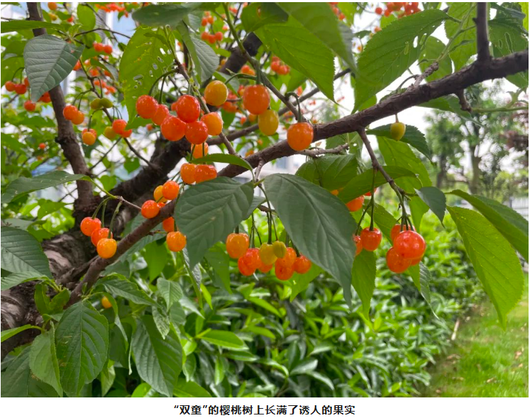 在“雙童”,水果都是員工共享,等到櫻桃成熟了,甜蜜的果實就要大家一起分享。挑選一個晴朗的日子,細心地把果實采摘下來,不僅是品嘗美味,也增進了同事間的情誼。