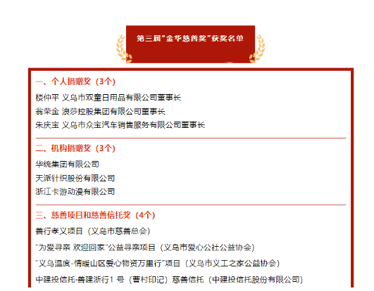 點擊第三屆“金華慈善獎”獲獎名單 獲取完整版