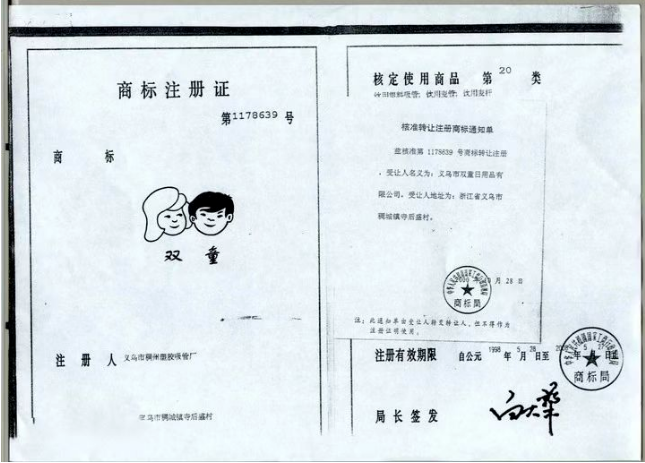 那時很多企業還沒有商標的概念,樓仲平走在了前列,他的“雙童”牌,成了整個義烏的第17個商標。