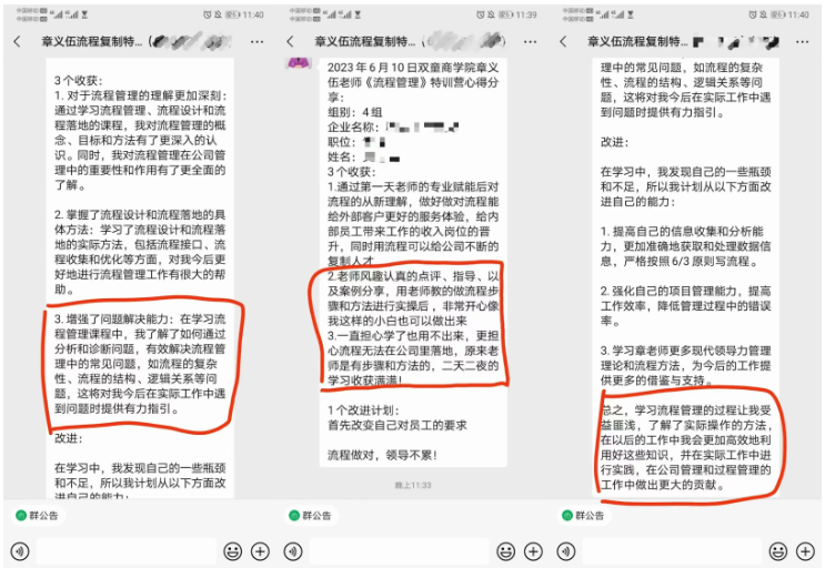 為了幫助學員對課程知識的理解、轉化與應用,課程結束后,章老師仍然會在群里為企業學員答疑解惑,不少同學也分享自己的所學所感,共同維護學習場域!