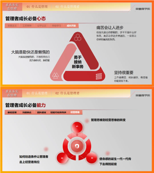 各位中小企業(yè)老板們,如果你也想把自己從大小瑣事中解放出來,也想要一支有活力、強(qiáng)要性的管理團(tuán)隊(duì),該課程學(xué)制為4個月,每月交付2天完成一個課程主題學(xué)習(xí),循環(huán)開班。6月7日-8日,歡迎到雙童商學(xué)院參加學(xué)習(xí)!