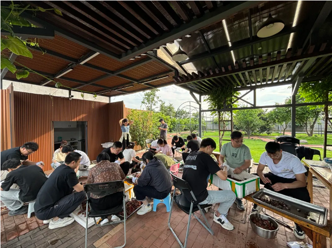 迎著晚風(fēng),雙童屋頂花園的枇杷林飄來(lái)陣陣香甜的氣息,沁人心脾!所以在等待小龍蝦成熟的過程中,大家在總助的提議下,決定一起釀一壇“枇杷酒”,待到下月團(tuán)建,就由銷售經(jīng)營(yíng)體的銷冠親自開封,儀式感直接拉滿!