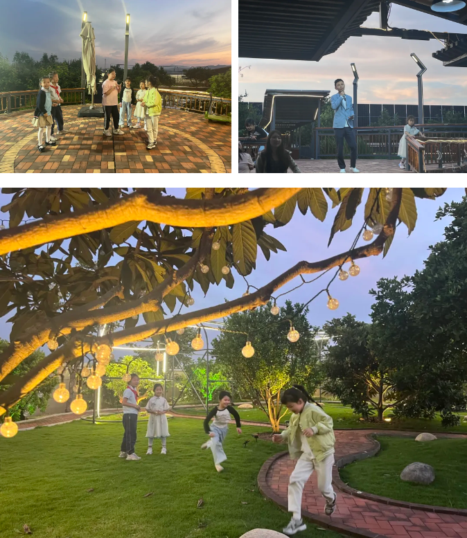 在整場(chǎng)活動(dòng)中,無(wú)論是大朋友、還是小朋友,都很投入,有人在對(duì)月當(dāng)歌,有人在舉杯暢飲,小朋友在草坪上恣意奔跑……