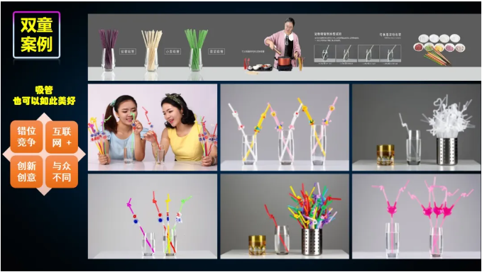 同時,“雙童”面對超大客戶高度集中造成利潤率日趨下降的困境,“雙童”更是運用國際站優勢開啟了備受社會各界關注的“小客戶原則”。并利用互聯網+與創意相結合,打破“吸管只能用來喝水”的隱含假設,研發高附加值的吸管,錯位競爭,徹底拉開了與同行的差距,持續20多年成為吸管行業NO.1。