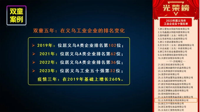 2023年,平臺整體增長35.24%;平臺稅收增長23.30%,成功登榜“納稅千萬元以上工業企業”和“義烏市工業企業五十強”!
