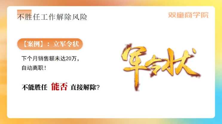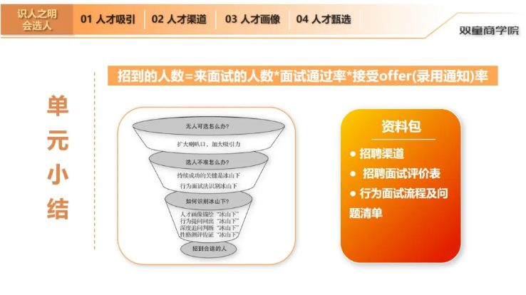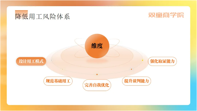 所以,《中堅力量》第二模塊將由雙童商學院中堅力量課程老師高熙昀、雙童商學院法律顧問吳軍財和雙童第五創業體總經理周上三位老師共同完成交付,分別從選人、育人、用人、留人和裁人5個方面,提升管理者“有溫度帶人”的能力!