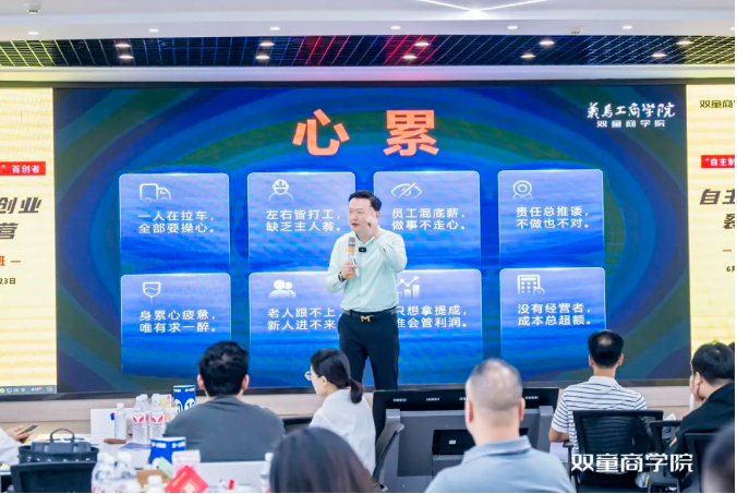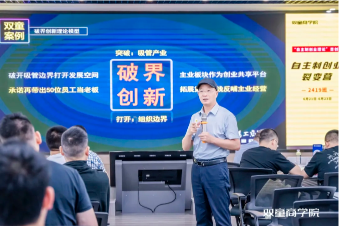 在第二天的實踐課程學習中,雙童總經理李二橋將以雙童內部對裂變機制的實際運行狀況為案例教材,現身說法,將課程分為五大模塊,16個小節,全部“掏干家底”地交付給學員,為學員詳細講解,該機制如何在“雙童”的生產、銷售等板塊落地的,以及如何管控各創業體與平臺之間的關系,以幫助更多中小企業能夠更好地學以致用!