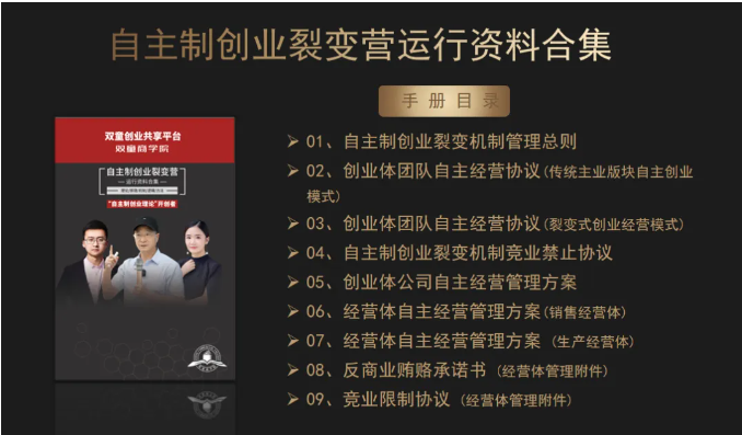 3、交付自主制創業裂變模式的各項規則、文本、合同等書面資料