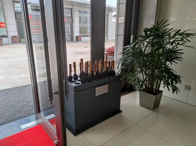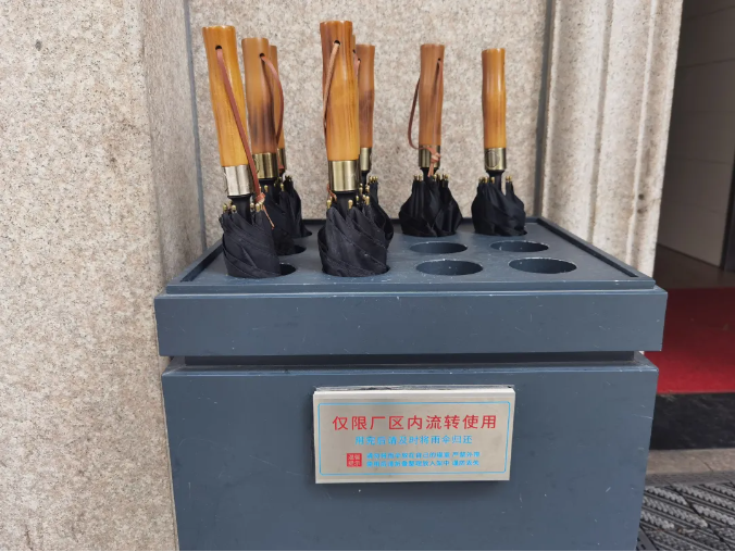 早在2009年,“雙童”就開始為員工準(zhǔn)備在廠區(qū)使用的流動(dòng)傘了。起初是因?yàn)?span style="margin: 0px; padding: 0px; outline: 0px; max-width: 100%; text-indent: 34px; color: rgb(34, 34, 34); box-sizing: border-box !important; overflow-wrap: break-word !important;">“雙童”董事長樓仲平注意到,下雨天總會(huì)有不少員工,因?yàn)橥泿愣焕г趶S房和食堂里,無法出行。這樣不僅耽誤行程、影響工作進(jìn)度,冒雨而行還可能對健康不利。為此,樓仲平讓后勤部門定制了第一批流動(dòng)雨傘,在一、二期廠房和宿舍樓下投入使用。在生產(chǎn)樓門口設(shè)置的流動(dòng)傘點(diǎn)位,防止車間員工淋雨現(xiàn)在,“雙童”在行政樓、生產(chǎn)車間大廳、餐廳、宿舍等人流量較大的6個(gè)點(diǎn)位投放了多個(gè)傘架,共300多把雨傘,確保在廠區(qū)任何位置都能就近找到點(diǎn)位進(jìn)行使用,最大化地解決員工雨天出行難的窘境,讓員工的工作和生活更有尊嚴(yán)。“雙童”流動(dòng)雨傘投放點(diǎn)位之一為了避免出現(xiàn)流動(dòng)雨傘分布不均勻的現(xiàn)象,“雙童”的后勤科部門每天都會(huì)對各個(gè)點(diǎn)位的雨傘數(shù)量進(jìn)行清點(diǎn),并對雨傘數(shù)量較少的點(diǎn)位進(jìn)行補(bǔ)充,保證各個(gè)流動(dòng)雨傘點(diǎn)位的雨傘數(shù)量均勻。