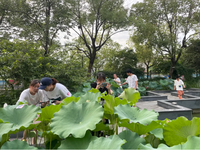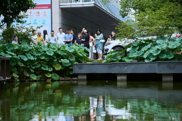 傍晚,員工們三兩成群漫步橋畔,沉醉荷池美景。聽瀑布潺潺,看斜陽映水,魚兒游弋添生機。時光寧靜美好,幸福感滿溢,令人向往,愜意無比!