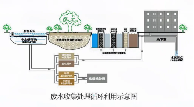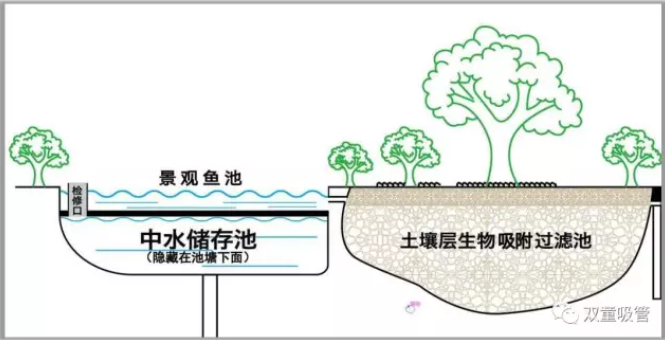 中水景觀池的精髓蘊含于其命名之中,“中水”實則源自“雙童”廠區內部經過處理的生活廢水。值得注意的是,這些廢水并非直接呈現為我們眼前所見的池水景象,而是巧妙地存儲于景觀池下方的特定中水儲存池中。