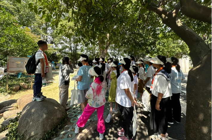 首站,吸管妞引領著同學們踏入了雙童景觀池。這看似平凡無奇的景致,實則蘊藏著不凡的智慧與環保理念。上層是一片波光粼粼、深達一米有余的景觀池,供人觀賞;下層則隱藏著四米五深的中水儲存池,構成了一個廢水收集中水回用系統。