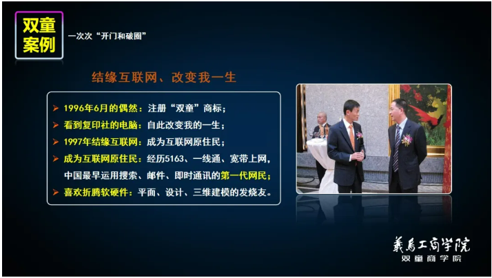 早在1996年注冊“雙童”商標時,自己就開始學習電腦應用,成為中國互聯網的原住民。并在數字化工具加持下,為“雙童”率先打開了國際市場,短短幾年時間,超越同行,奠定了成為行業冠軍的基礎。