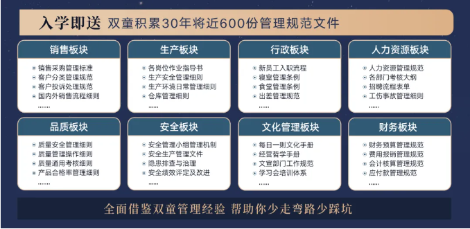 這個U盤,是項目組花費了近一個月時間為大家準備的,包含了20G、近600份文件!涵蓋了雙童30年積累的銷售、生產、行政、人力資源、品質、安全、文化管理、財務等8大板塊管理資料: