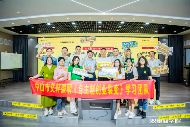 本期裂變營課程,更是迎來了自開課以來單位企業人數最多的一支學習團隊——中山市艾軒照明學習團隊,這家300人左右的中小企業,同時派出了14位核心高管共同學習該課程!