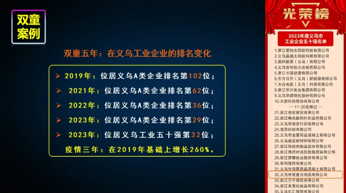 2023年,平臺整體增長35.24%;平臺稅收增長23.30%,成功登榜“納稅千萬元以上工業企業”和“義烏市工業企業五十強”!