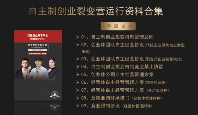 3、交付自主制創業裂變模式的各項規則、文本、合同等書面資料