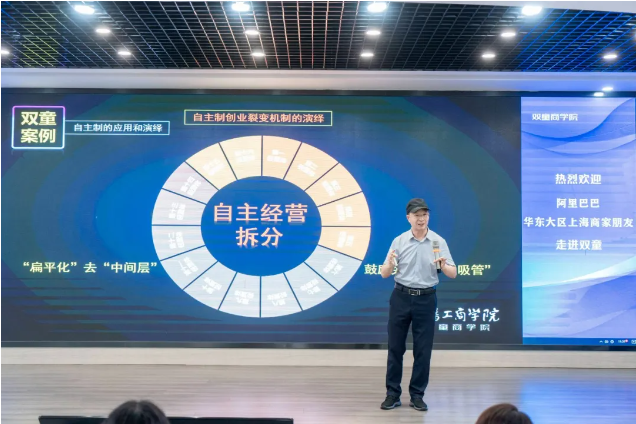 現場課堂座無虛席,氣氛熱烈。創始人樓仲平為大家分享了《“一根吸管”的破界創新》主題課程,深入淺出地分享了他的寶貴經驗。在講述中,他回顧了與阿里巴巴結緣超過20年的歷程,并詳細闡述了“雙童”這家中小企業如何在數字化轉型的大潮中乘風破浪,一路走來所經歷的挑戰與成就。