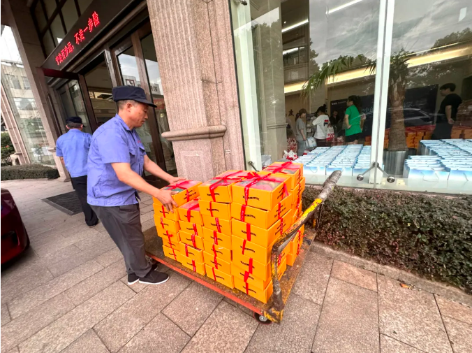 中秋福利準(zhǔn)備好啦!收到領(lǐng)取消息的小伙伴們,立馬拉著推車火速趕來了領(lǐng)取現(xiàn)場(chǎng),把本部門的福利全領(lǐng)走啦!有美味的月餅,還有30周年紀(jì)念杯!