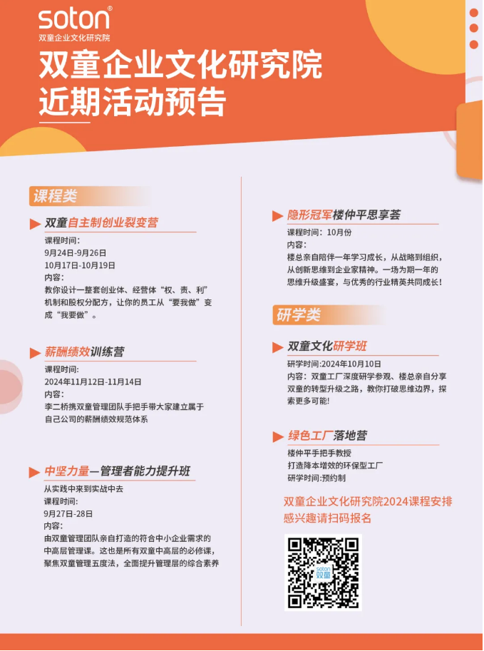 今年的禮品袋中蘊(yùn)含了一份尤為珍貴的禮物——正是樓總親筆撰寫的著作《韌商》。此書詳盡敘述了樓總自1978年起,從“雞毛換糖”的微小起點(diǎn),歷經(jīng)無數(shù)艱難險(xiǎn)阻,直至成為“吸管大王”的艱辛旅程。樓總將此書贈(zèng)予每位雙童人,希望大家在閱后能夠汲取到力量與靈感,繼續(xù)以堅(jiān)韌不拔的精神前行!