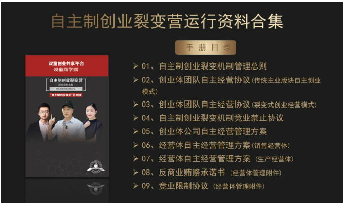 3、交付自主制創業裂變模式的各項規則、文本、合同等書面資料