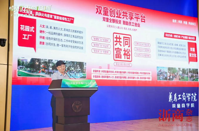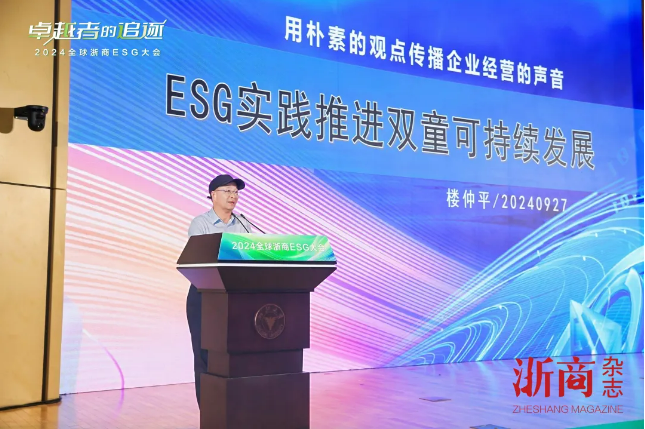 9月27日,“卓越者的追逐——2024全球浙商ESG大會”在杭州隆重舉行。本次大會匯聚了眾多行業頂尖專家和具有卓越影響力的企業家代表,共同深入研討ESG領域的前沿動態、實踐經驗以及未來的發展方向。雙童董事長樓仲平受邀出席,并發表了以《ESG實踐推進雙童可持續發展》為主題的演講。