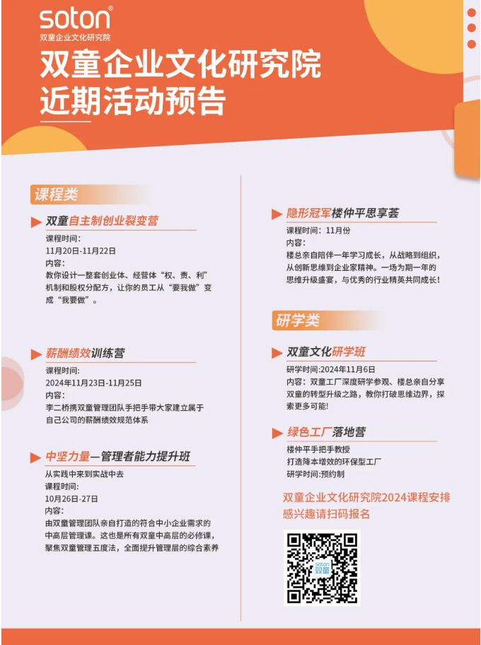 一家家中小企業通過復制雙童的裂變機制中,打開了自己更大發展的空間,從而帶動員工共同富裕。