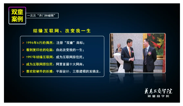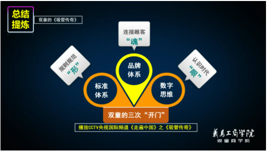 前文所述的雙童先后三次“開門”的經(jīng)歷只是《雙童文化研學(xué)班》創(chuàng)始人樓仲平主題課程分享的精彩片段。分享介紹后,樓總還將以問答互動(dòng)的形式為學(xué)員們解答參觀過程中疑惑、或者企業(yè)發(fā)展中遇到的問題,讓大家在研學(xué)活動(dòng)中避免走馬觀花,真正找到“雙童”經(jīng)營過程中的科學(xué)管理邏輯,實(shí)現(xiàn)創(chuàng)業(yè)思維的升階!