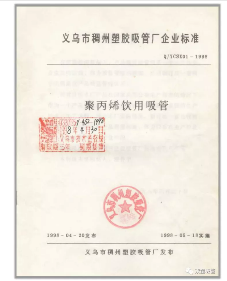 中國吸管行業(yè)最早的企業(yè)標(biāo)準(zhǔn)