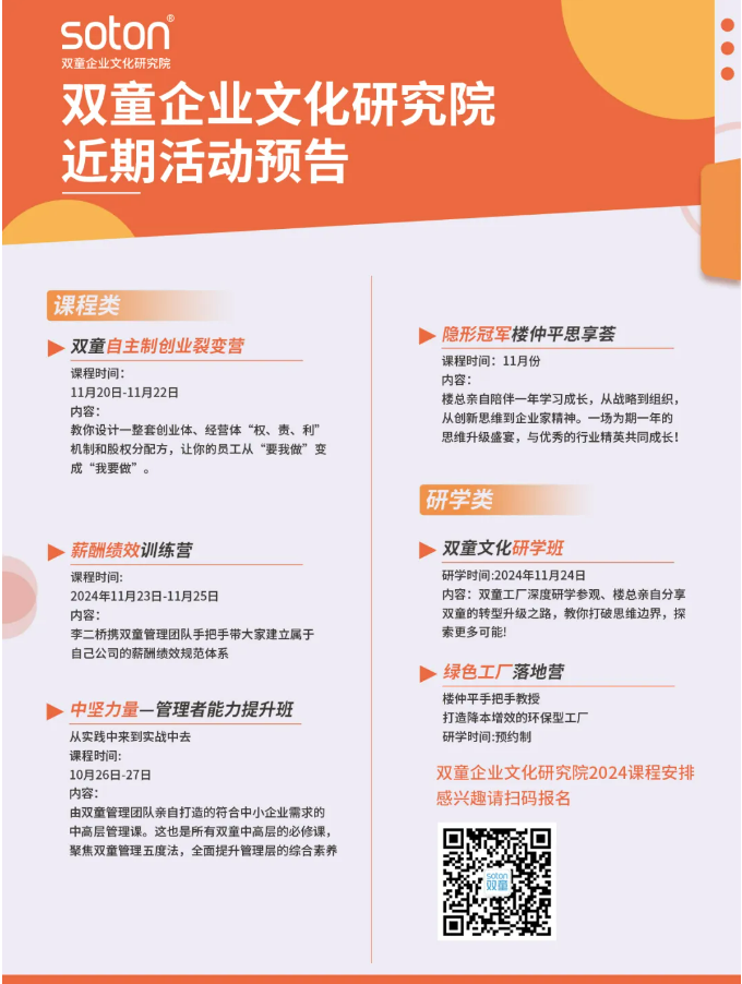 雙童商學(xué)院將通過本次展會(huì),向更多中小企業(yè)傳播雙童的文化、經(jīng)營理念,讓更多人認(rèn)識(shí)這個(gè)實(shí)戰(zhàn)類創(chuàng)業(yè)教育培訓(xùn)的商學(xué)院。