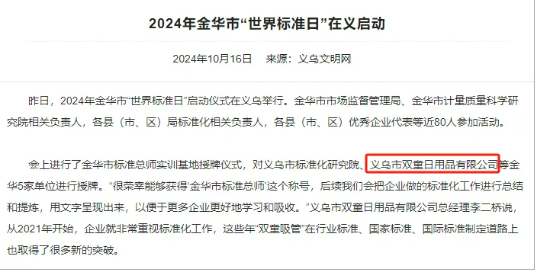 未來,雙童將進一步加強標準創(chuàng)新工作,讓自己始終站在更高舞臺上審視產(chǎn)業(yè)發(fā)展的未來變化,同時也用自己的經(jīng)驗助力更多企業(yè)的標準化制定工作,為提升全社會標準化意識、將義烏建設(shè)成為各類行業(yè)標準資源聚集高地貢獻自己的力量!