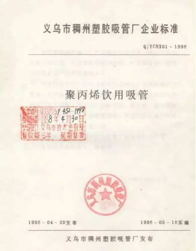1998年 | 《聚丙烯飲用吸管》企業(yè)產(chǎn)品標準 |