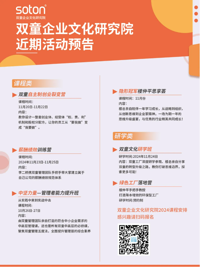 標準的制定讓雙童始終站在產(chǎn)業(yè)的高度,從而能夠在產(chǎn)業(yè)革命中成功突圍,持續(xù)生存。