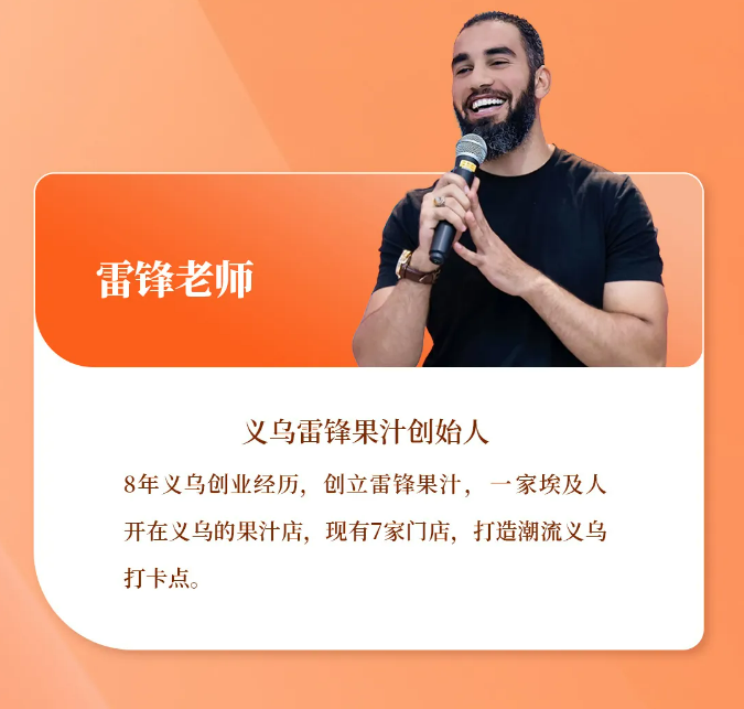 2)來自埃及的國際友人雷鋒老師,將帶來他在異國他鄉的創業故事,讓學員們能從一個全新的視角去看待創業這件事情。