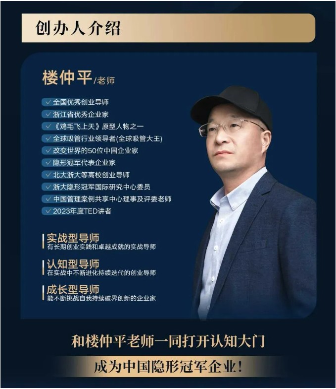 如果你是創業者、學習者、思想者,希望在經營領域有更深的思考和洞察,那么《隱形冠軍樓仲平思享薈》就是為你量身定制,今年最后一期招生,一班只招40位同學,即將開課,名額所剩不多,抓緊機會哦!