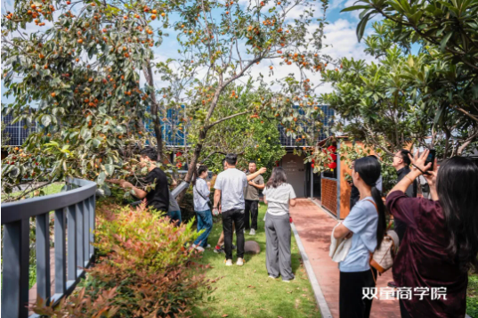 恰逢“雙童”屋頂花園的柿子成熟,大家一起在現場課堂途中駐足采摘,是一次別有風味的學習體驗