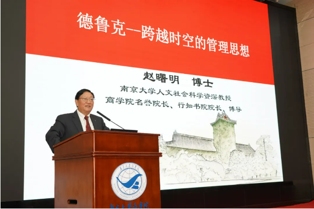 在論壇上,趙曙明教授從自身求學時與彼得·德魯克教授的交往、合作經(jīng)歷出發(fā),發(fā)表了名為“德魯克——跨越時空的管理思想”的主題演講。