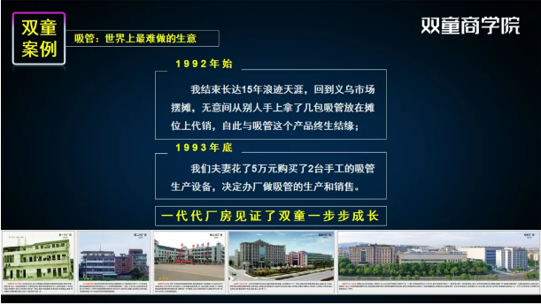 目前,雙童創業平臺已成功孵化出了16家創業體和26個經營體,并創造了3.6倍的業績增長,成功反哺了主業經營!形成了以吸管制造業為基礎,以國際貿易和創業教育兩大板塊為融合的新型產業模式,完成了從“一根吸管”到“創業平臺”的轉變!