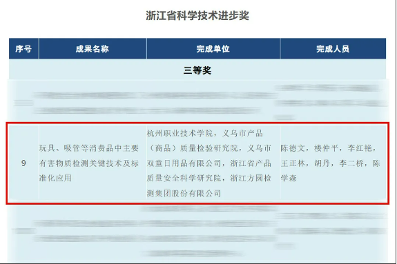 該項目完成了玩具、吸管等日用消費品中鉛、鎘、銻等90種有害成分檢測方法與質量控制關鍵技術創新及其應用,創新成果被及時應用于28項玩具、吸管國際標準/國家標準的制定工作,通過及時掌握吸管行業的國際話語權,規范行業發展的同時促進產品質量提升,有力推動了我國吸管行業“雙碳”戰略的實施。