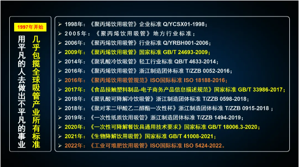 截至目前,雙童參與并主導了中國吸管產業的眾多標準化工作,包括團體標準、行業標準、國家標準乃至ISO國際標準等十多項國家級標準的制定與編纂,為中國吸管產業在全球市場的長遠發展爭取到了規則主動權和行業話語權。